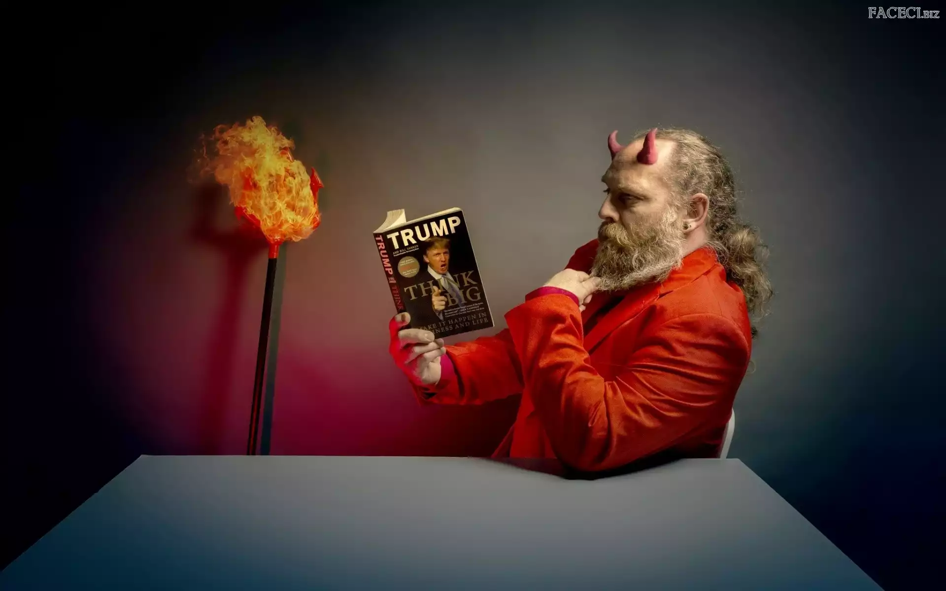 Książka, Trójząb, Rogi, Mężczyzna, Pochodnia - faceci.biz